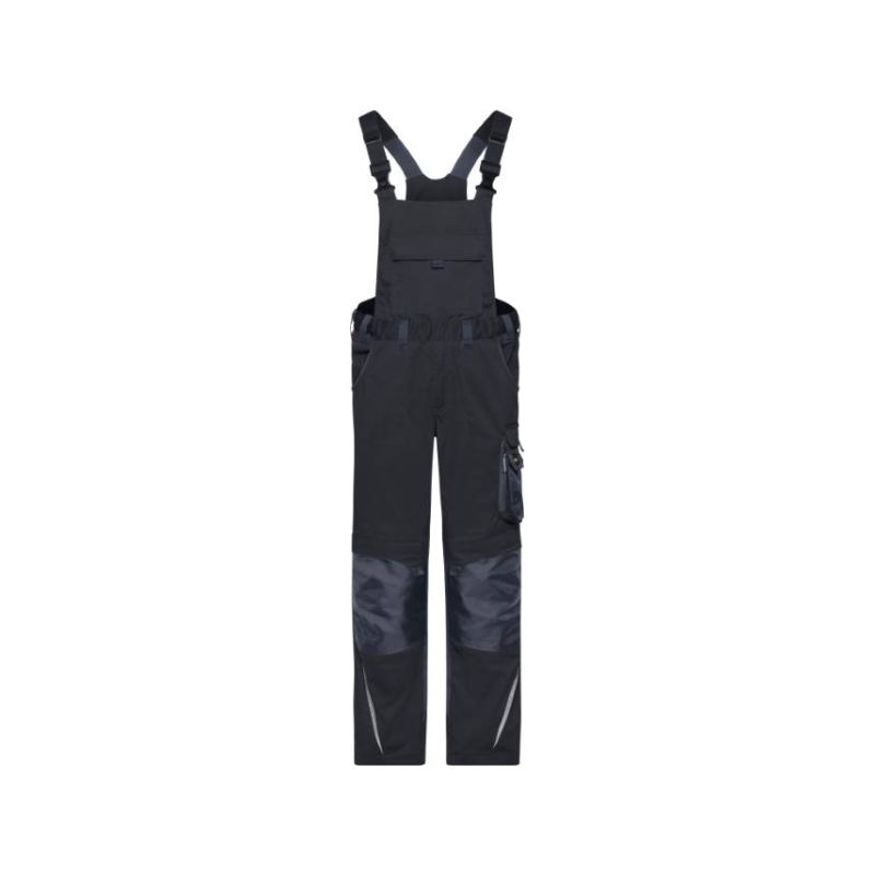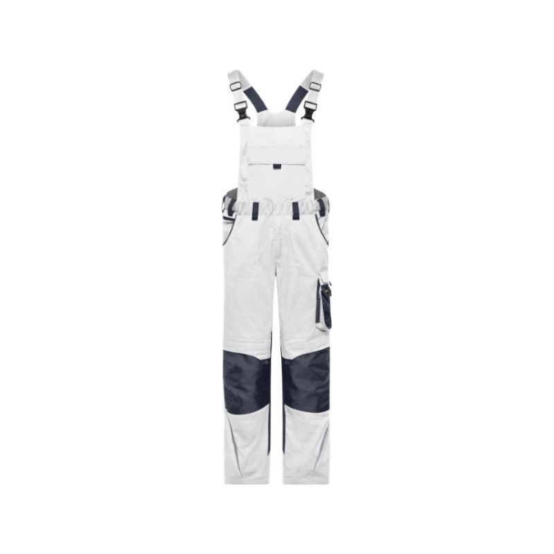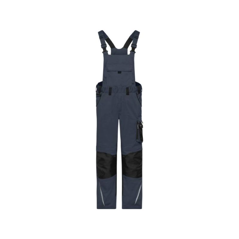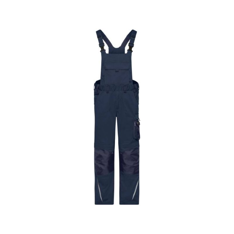 Adjustable bib with elastic straps, elastic waistband with belt loops, YKK zips, slide-in pockets, several tool pockets, kneepad pockets reinforced with Cordura®, spacious pocket with zip on bib inside, tearproof 3-way stitched seam, reflective elements (without protective function), 60° washable, suitable for tumble drying, available in 3 lengths, in the webshop: short 02.133S, medium 02.133M/02.133X, long 02.133L, size 62 Art.Nr. 02.133X