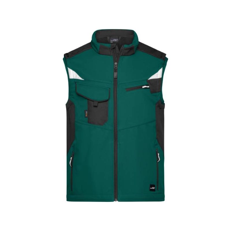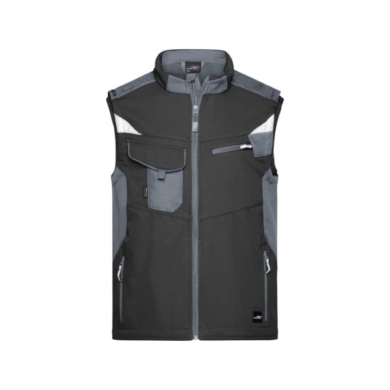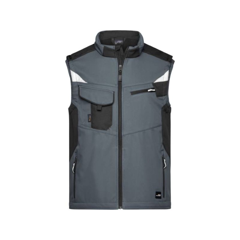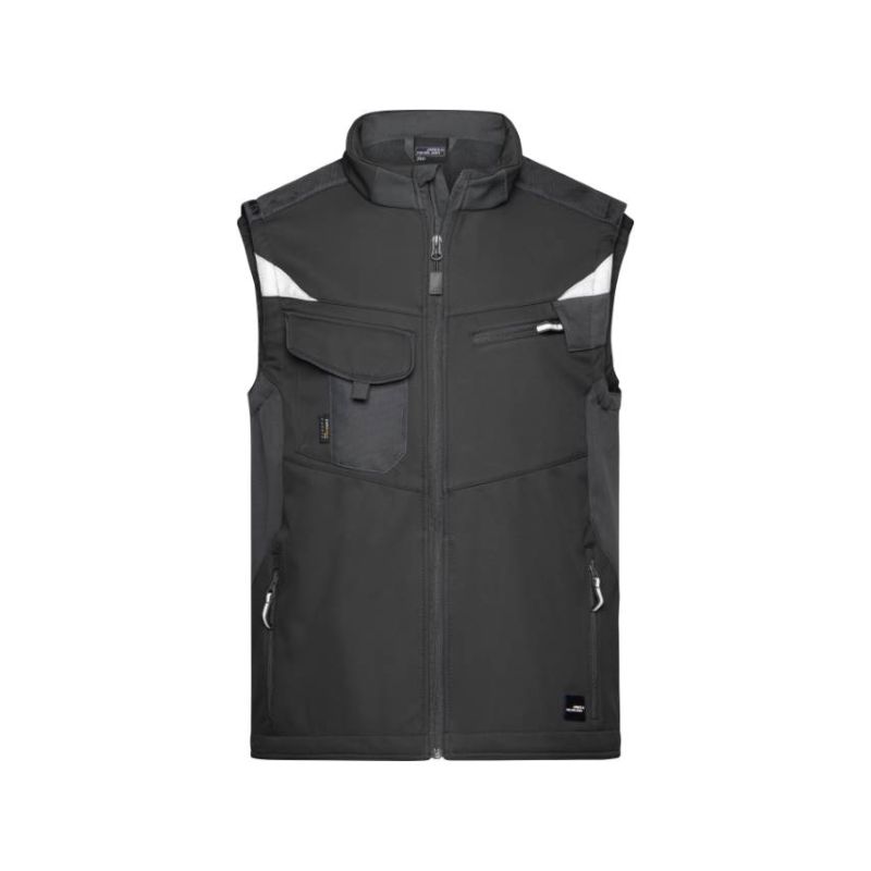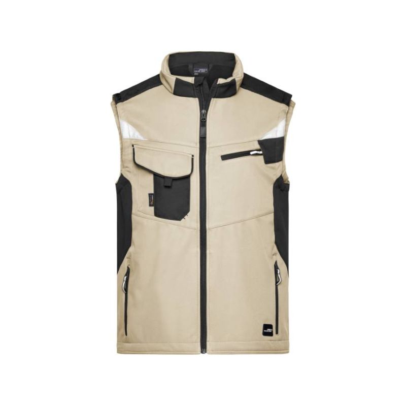 Wind and water repellent (2,000mm water column), breathable (2,000g/m² in 24h), stand-up collar, shoulder area reinforced with Cordura®, lined zip with windshield, inner pocket, side pockets and breast pocket with zip, durable softshell material, reflective elements (without protective function) on armholes and the back
