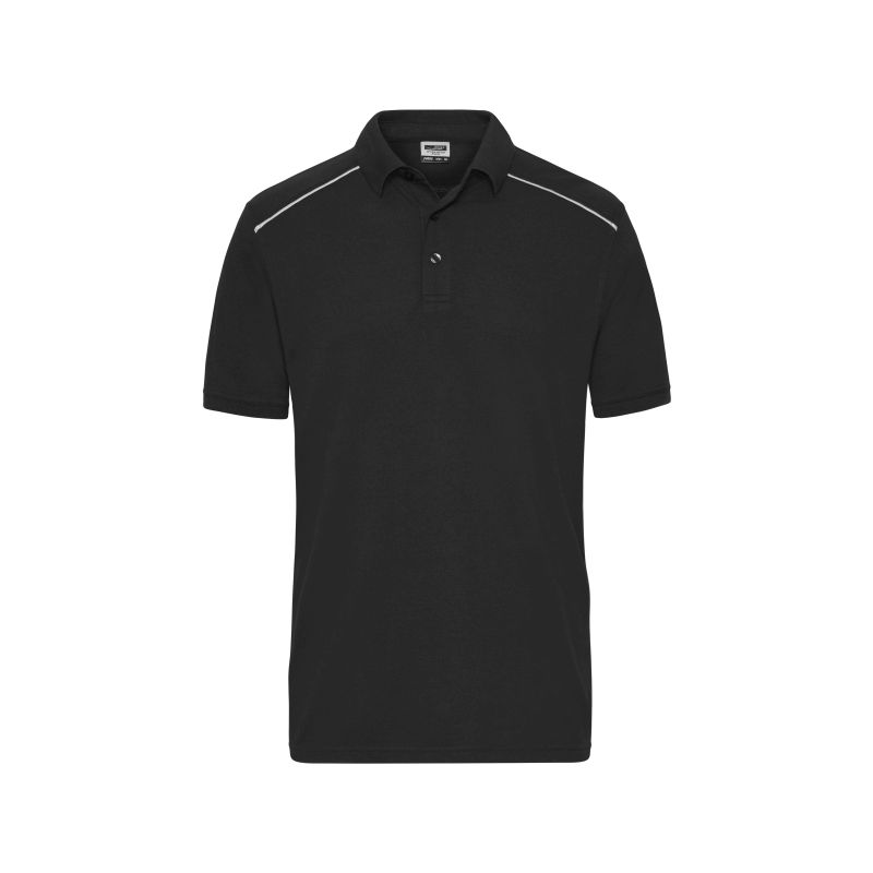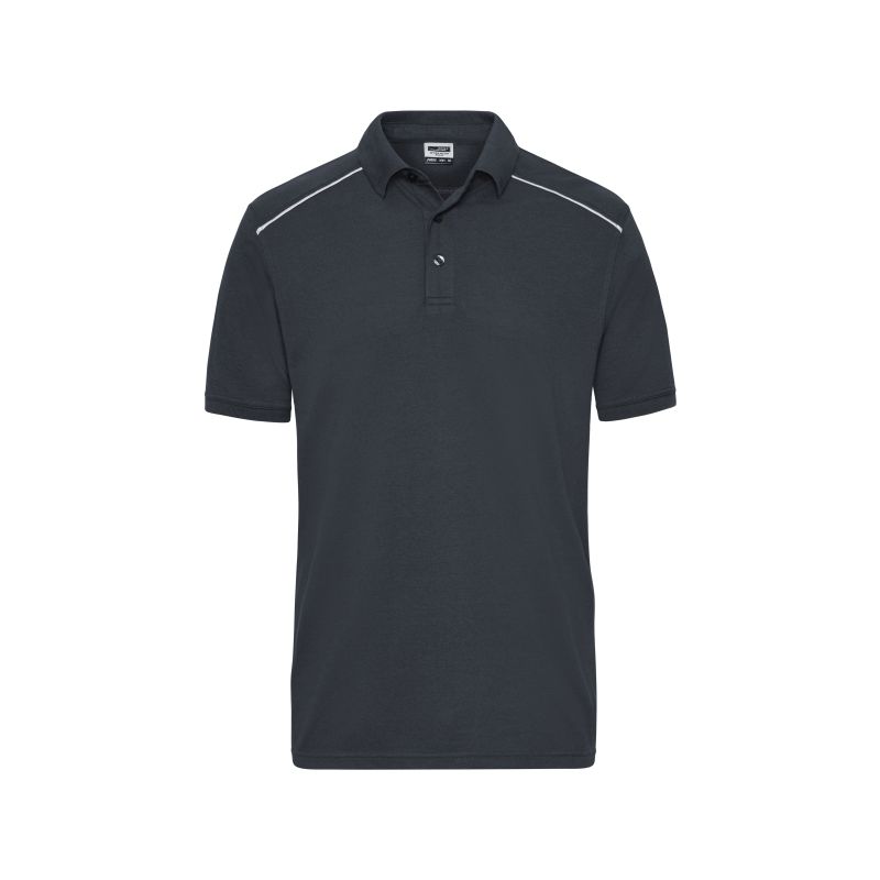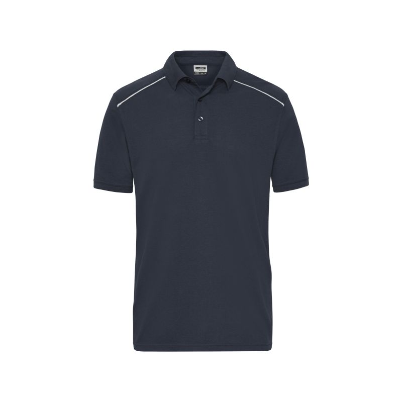 Knitted collar and cuffs, 3 button-placket with tone-in-tone buttons, contrasting piping at the front and at the back, UV protection 50+, 60° washable, suitable for tumble drying